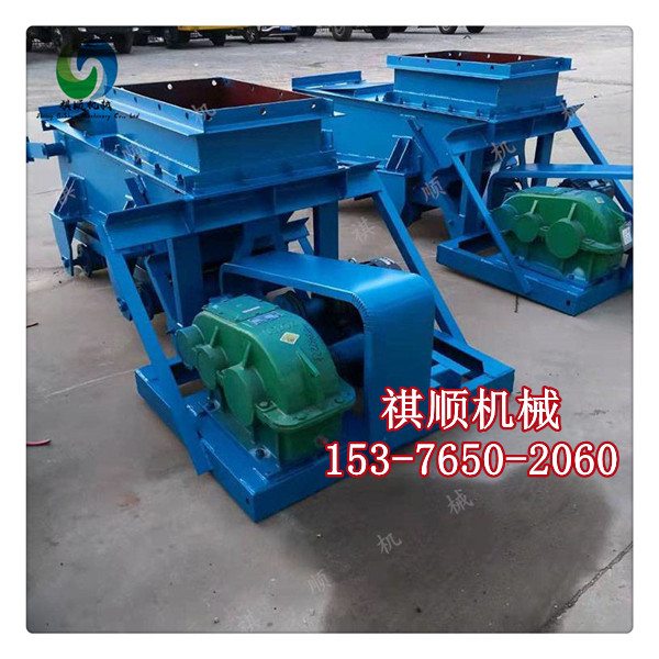 K型给料机由机架、底板(给料槽)、传动平台、漏斗、闸门、托辊组成,当电机开动后经弹性联轴器,减速机、曲柄连杆机构拖动倾斜5度的底板,在辊上作直线往复运动,把煤或其它磨琢性小,粘性不大的松散粒状,粉状物料从给料设备中均匀地卸到受料设备中